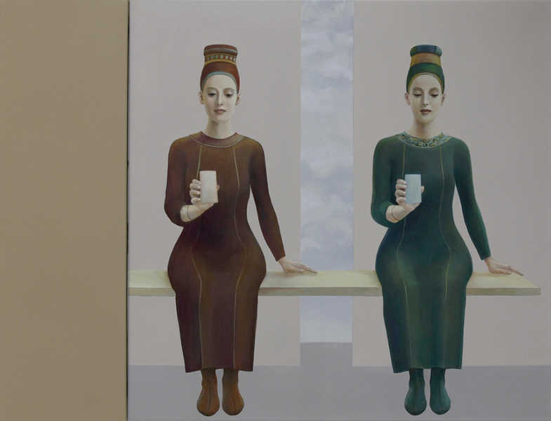 The artist describes the emanation of her images as “a fusion of different persons from different times and cultures, as handed down to us through the arts.” Her search includes the observation of contemporary people as well. In this way she creates a sort of amalgam of human images, always slightly reminiscent – of somebody, of somewhere, or some feeling of being fresh, unspent and peaceful.
